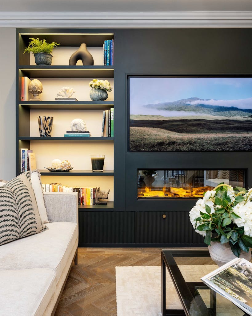 In many homes, especially in London, storage space is a priority. A media or fireplace wall can serve as more than just a focal point—it can also be a clever storage solution. By incorporating bespoke cabinetry and shelving into the wall, you can keep your space clutter-free without detracting from the overall design.