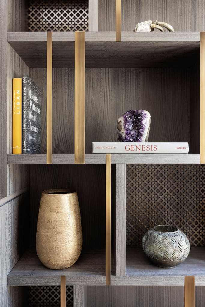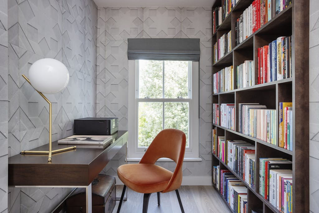 Between the ground and first floor, we installed custom shelved storage, optimising the home’s footprint and crafting a dedicated study that embodies smart design and efficiency.