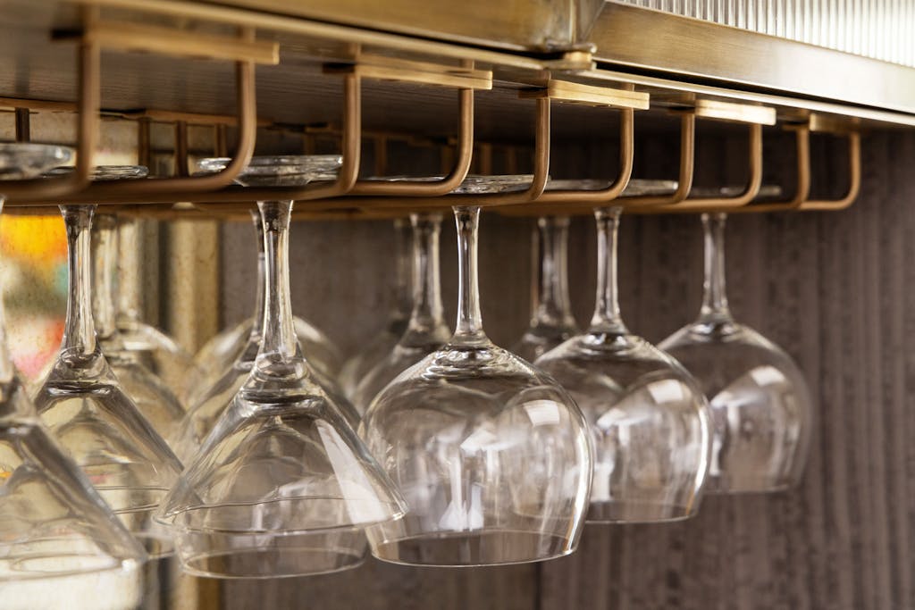 This HUX bespoke bar, with its fluted glass detailing and brass accents, offers a sophisticated hub for home entertaining. It showcases an interplay of textures with mirror adding depth and reflection, while the distinctive doorstyle, featuring a geometric metal design, offers a modern twist on classic luxury.