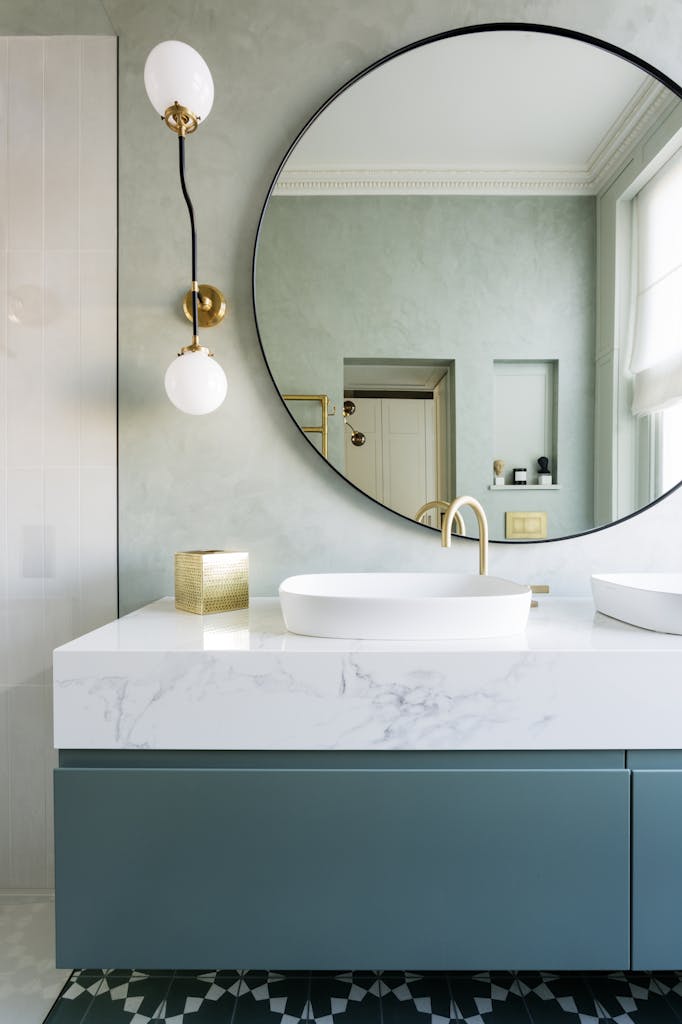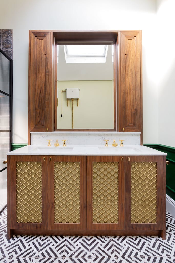 Choose from finishes such as painted timber, oak veneer, Corian, or back-painted glass. Each is expertly crafted in our Buckinghamshire workshop, ensuring durability even in humid environments while maintaining a flawless finish.