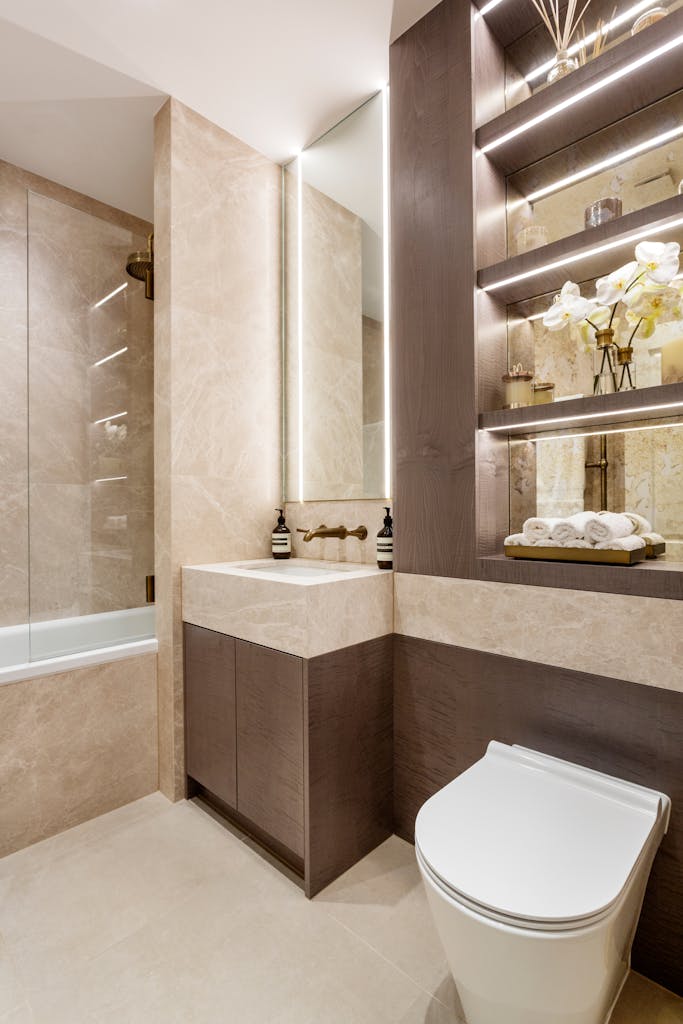 Smaller bathrooms and cloakrooms deserve the same level of design consideration as larger ones. Our design team specialises in space-saving solutions, from concealed cabinetry and mirrored storage walls to floating vanities that enhance visual lightness.