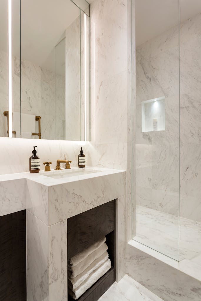 Popular options include brushed brass fittings, ribbed or fluted detailing, and integrated LED lighting — subtle touches that create a sense of calm, luxury, and longevity.
