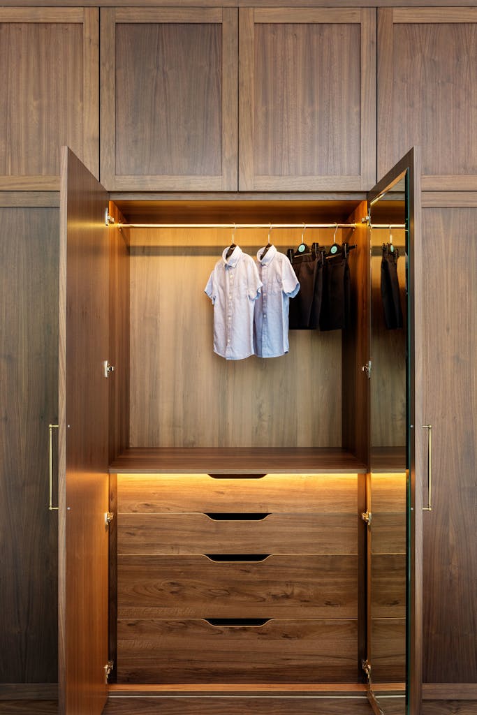 - Integrated wardrobe lighting solutions such as LED strips and motion sensors.