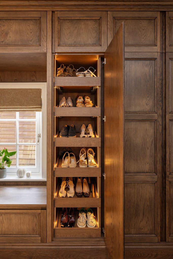 Tailored Storage Solutions: Every wardrobe and dressing room is planned around your lifestyle and requirements, down to the smallest accessory divider.