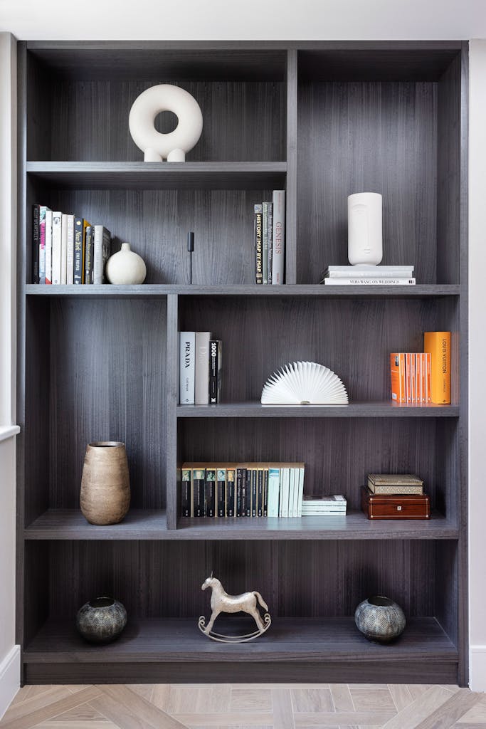 Be it a polished plaster feature wall, a veneered cabinet with metal inlay, or a seamless spray-painted finish, our designers craft pieces entirely unique to you. We specialise in made-to-measure shelving, cleverly integrated storage, and bespoke finishes that elevate your interior design while offering practical solutions.