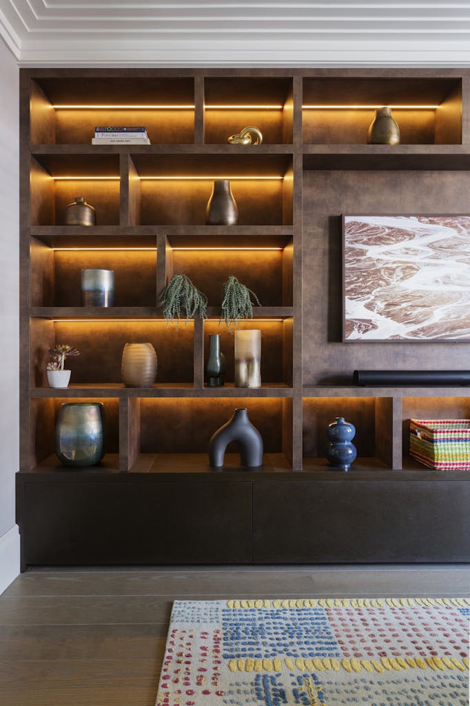 At HUX, each design is tailored to its surroundings — uniting cabinetry, lighting, and material textures to create a cohesive feature that enhances both the aesthetic and atmosphere of the home.