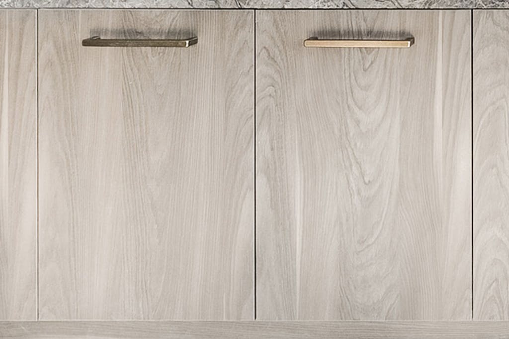 The kitchen cabinetry is clad in high quality Italian Xylocleaf, a premium laminate that is both durable and superbly aesthetic. The base units refer to a timber look while the wall units have a metallic effect, creating an Armani-esque aesthetic. Denver grey marble worktops complement the scheme which is accessorised with bronze rod handles. The interior architecture & design scheme has been developed with understated luxury and stylish sophistication in mind.